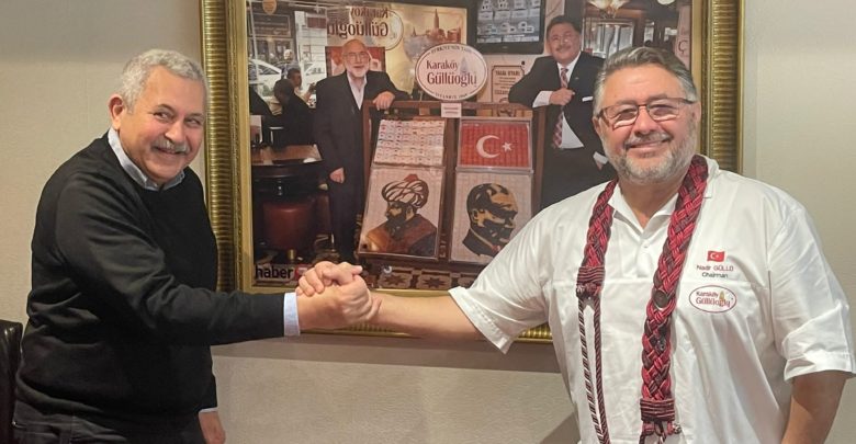 فى مكتبه بالطابق الاخير رحب بنا نادر اوغلو الشيف الحلوانى وصاحب هذا الصرح الكبير والمتميز وقال لنا انه امتداد لاسرة عملت من ٢٠٠ عام فى هذه المهنة