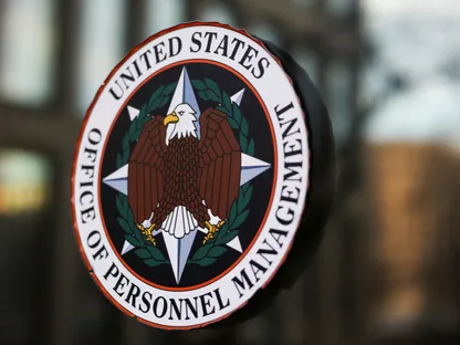 /شعار مكتب إدارة الموظفين OPM بعد فصل الموظفين المؤقتين في واشنطن. 13 فبراير 2025 – reuters