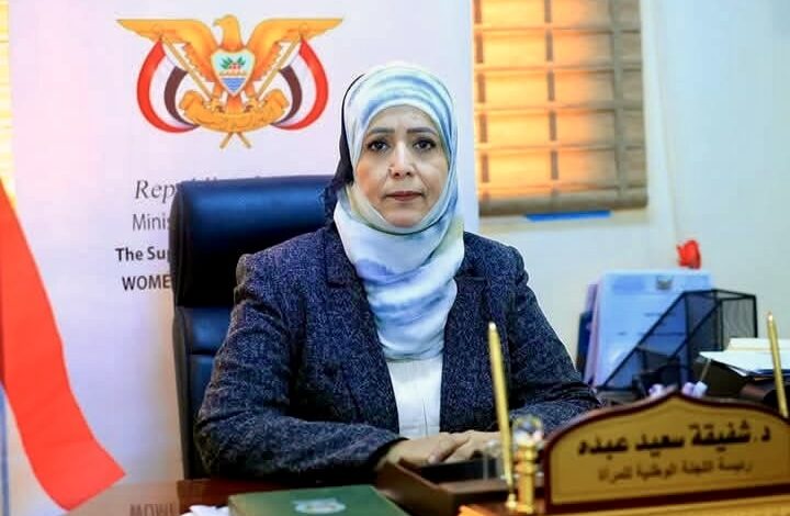 ٲعربت الدكتورة شفيقة سعيد عبده، رئيسة اللجنة الوطنية للمرأة،عن ٲسفها الشديد للغياب التام لتمثيل المرأة اليمنية في قرارات التعيين العليا الأخيرة لنواب وزراء من مجلس القيادة الرئاسي، واصفة ذلك بالإقصاء والتجاهل رغم كل المطالبات.