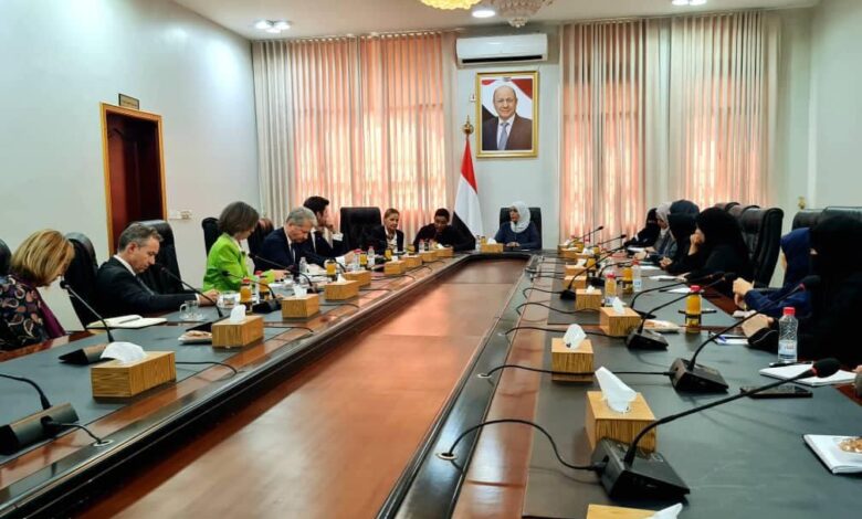 بحثت رئيسة اللجنة الوطنية للمرٲة دكتورة / شفيقة سعيد ، اليوم الٲثنين، بالعاصمة المؤقتة عدن، مع وفد الاتحاد الأوروبي والبنك الدولي الذي ضم رئيس قسم التعاون في بعثة الاتحاد الأوروبي جوست مولمان، ومدراء ورؤساء أقسام التنمية والتعاون في سفارات المملكة المتحدة تشارلز هاربر، وفرنسا إيمريك بوفيلين، وألمانيا مارسيلا ماسياريك، والنرويج أندرياس سلوردال، وهولندا مارييك ويردا، والمديرة القُطرية لمجموعة البنك الدولي في اليمن دنيا أبو غيداء ، سبل التعاون المشترك فيما يخص قضايا المرٲة .