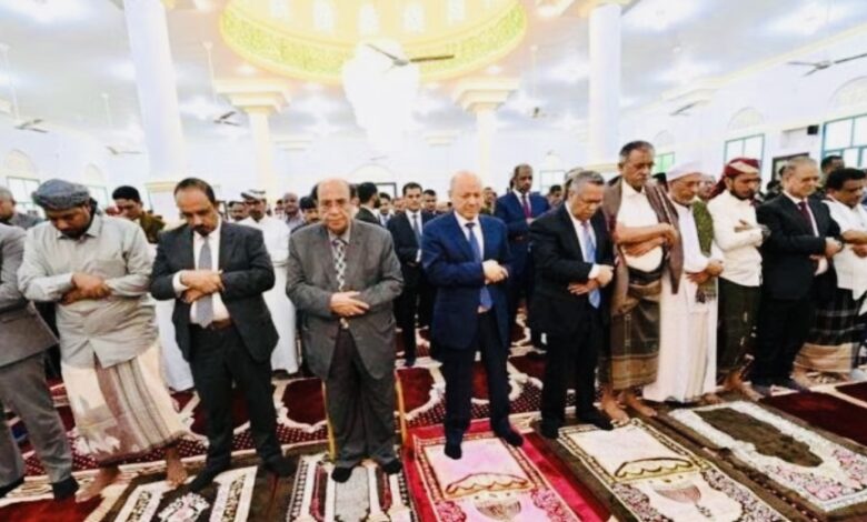 رئيس مجلس القيادة الرئاسي يؤدي صلاة عيد الأضحى في المكلا ويستقبل جموع المهنئين بالقصر الجمهوري