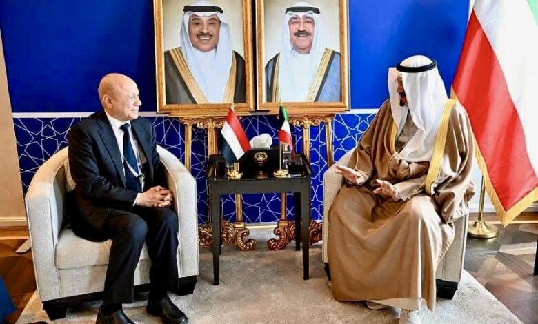 رئيس مجلس القيادة الرئاسي يبحث ورئيس الوزراء الكويتي العلاقات الثنائية والدعم المطلوب للحكومة الجديدة