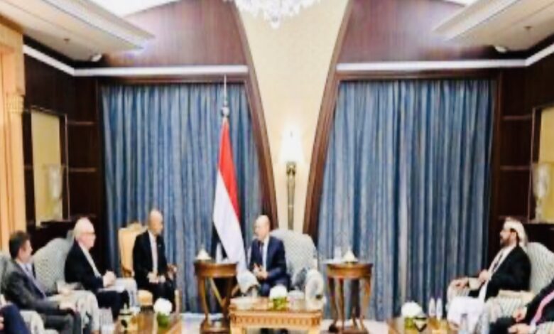 جاء ذلك خلال استقباله ومعه أعضاء المجلس، سلطان العرادة، عبدالله العليمي، وعثمان مجلي، اليوم الاربعاء، مبعوث الولايات المتحدة الأميركية تيموثي ليندركينج، والسفير الأميركي ستيفن فاجن، للبحث في مستجدات الجهود الإقليمية والدولية الرامية لإحياء مسار السلام في اليمن.