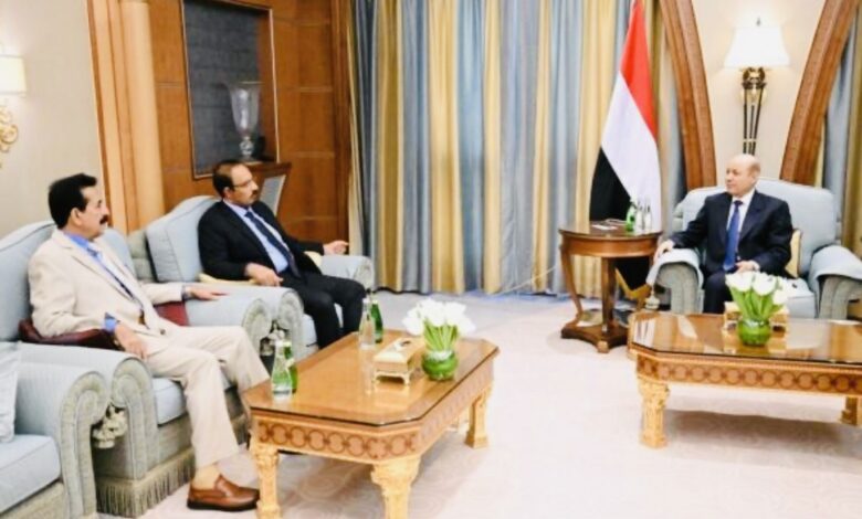 رئيس مجلس القيادة الرئاسي يناقش أوضاع محافظتي الجوف وحضرموت ويشدد على ضرورة تعزيز الاصطفاف لدعم معركة إنهاء الانقلاب