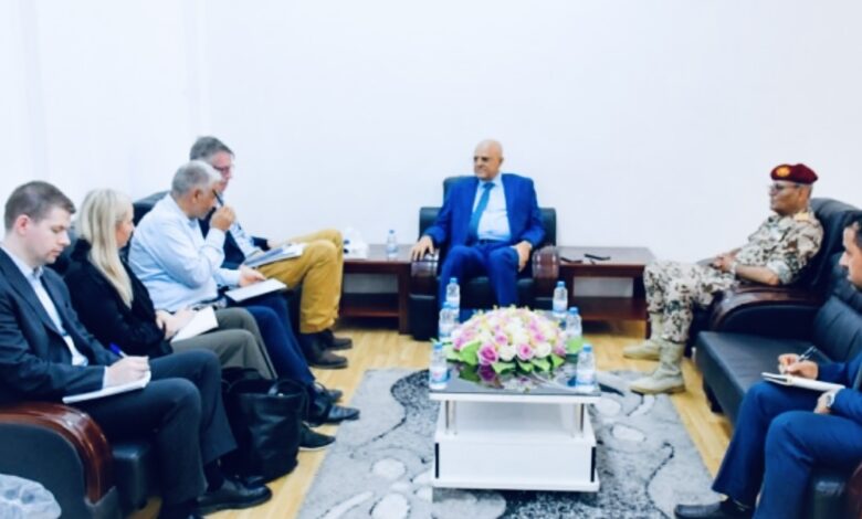 بحث محافظ تعز، نبيل شمسان، السبت، مع المستشار العسكري للمبعوث الأممي إلى اليمن العميد انطوني هايورد والفريق المرافق له، جهود إحلال السلام