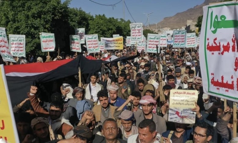 حيث شهدت العاصمة صنعاء مسيرة حاشدة ردد المشاركون فيها الهتافات المنددة بالحصار الامريكي على المشتقات النفطية .وخلال المسيرة أكدت كلمة علماء اليمن التي القاها مستشار رئيس المجلس السياسي الاعلى العلامة محمد مفتاح ان مسيرة اليوم هي مسيرة اصرار وتحدي وتأكدي لأمريكا وأدواتها بإن الشعب اليمني لن يضعف ولن يستكين أمام جبروتهم وحصارهم .. وسيواجه التصعيد بالتصعيد ويرفد الجبهات بالرجال والمال .