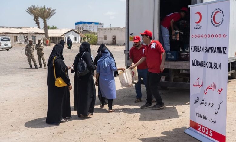 عدن: الهلال الأحمر التركي والهلال الأحمر اليمني يدشنان مشروع الأضاحي لأكثر من 700 أسرة في مديرية خورمكسر محافظة عدن