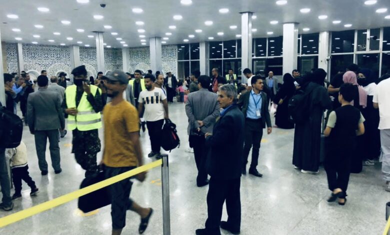 كان في استقبالهم مدير مطار صنعاء الدولي خالد الشايف وأهالي وأقارب العائدين.