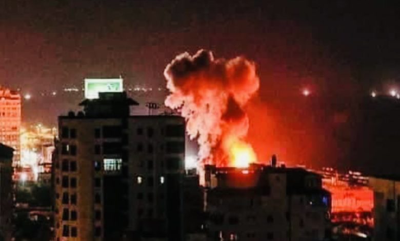 وتداول ناشطون صورا للقصف الذي طال اهداف عسكرية حوثية بصنعاء قبل قليل.