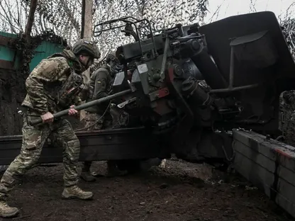 جنود أوكرانيون يطلقون نيران المدفعية باتجاه القوات الروسية في إقليم دونيتسك شرقي أوكرانيا. 11 ديسمبر 2025 – REUTERS