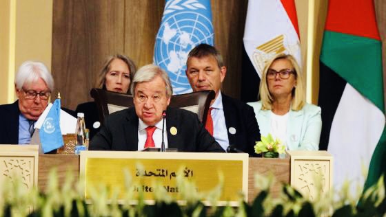 جاء ذلك في كلمة الأمين العام أمام مؤتمر رفيع المستوى عُقد تحت عنوان “النداء العاجل للعمل من أجل توفير الإغاثة لإنقاذ حياة سكان غزة” اليوم الثلاثاء في البحر الميت بالأردن، بدعوة من العاهل الأردني والرئيس المصري والأمم المتحدة.