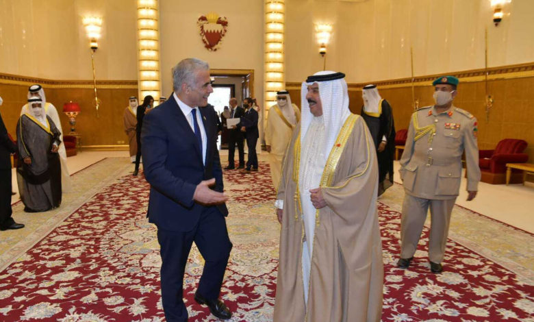 وبحث لابيد في المنامة أمس مع العاهل البحريني حمد بن عيسى آل خليفة، خلال اجتماع هو الأول من نوعه، المسائل الأمنية، منها ملف إيران، والاقتصادية.