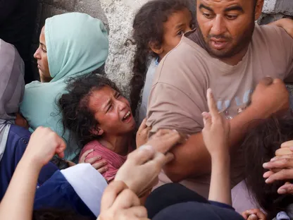 فتاة تبكي خلال محاولتها الحصول على خبز من أحد المحلات في خان يونس، جنوب قطاع غزة، 23 أكتوبر 2024 – REUTERS
