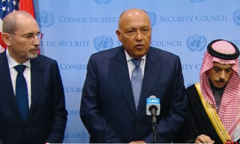 وزير الخارجية المصري خلال مؤتمر للمجموعة العربية بالأمم المتحدة: يجب تجنب محاولة تصفية القضية الفلسطينية على حساب دول الجوار.. وندعو لوقف فورى ومستدام لإطلاق النار فى غزة ونرفض ازدواجية المعايير