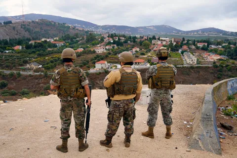 نود من الجيش اللبناني يحرسون بلدة المطلة الإسرائيليةAP Photo/Bilal Hussein