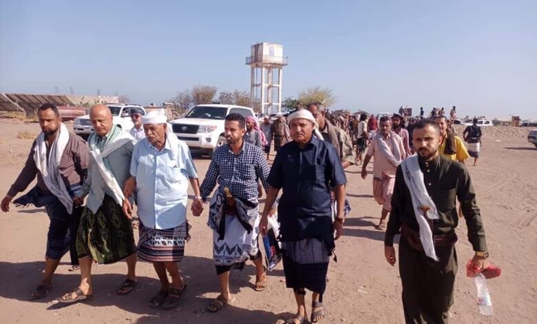 يتقدمهم المناضل اللواء محمد يحي جابر والدكتور ناصر الخبجي وعدد من القيادات العسكرية والأمنية والشخصيات الاجتماعية ومشائخ مديريات ردفان الأربع