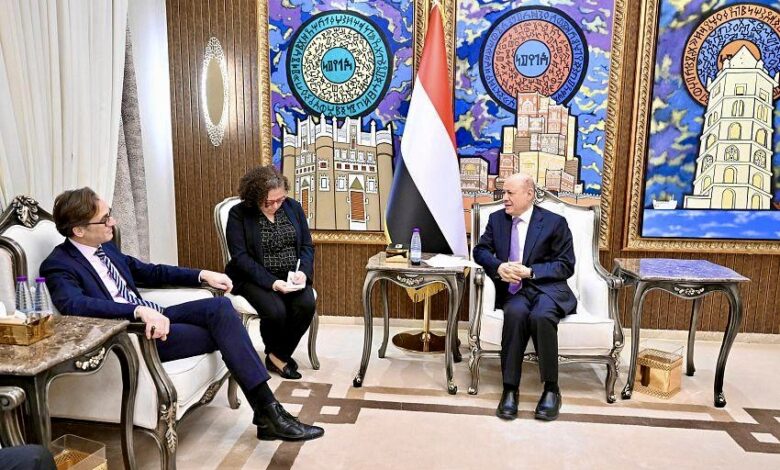 جاء ذلك خلال استقبال العليمي، اليوم الاثنين، المفوض الخاص لوزارة الخارجية الألمانية لشؤون الشرق الأوسط والأدنى وشمال أفريقيا توبياس تونكل، وسفير جمهورية ألمانيا الاتحادية لدى اليمن توماس شنايدر، حيث تناول اللقاء العلاقات الثنائية العريقة بين البلدين الصديقين وسبل تطويرها في مختلف المجالات، وأولويات الدعم الألماني والأوروبي لتعزيز قدرات الحكومة اليمنية في فرض الأمن والاستقرار وبناء السلام، وفق وكالة “سبأ” الحكومية.