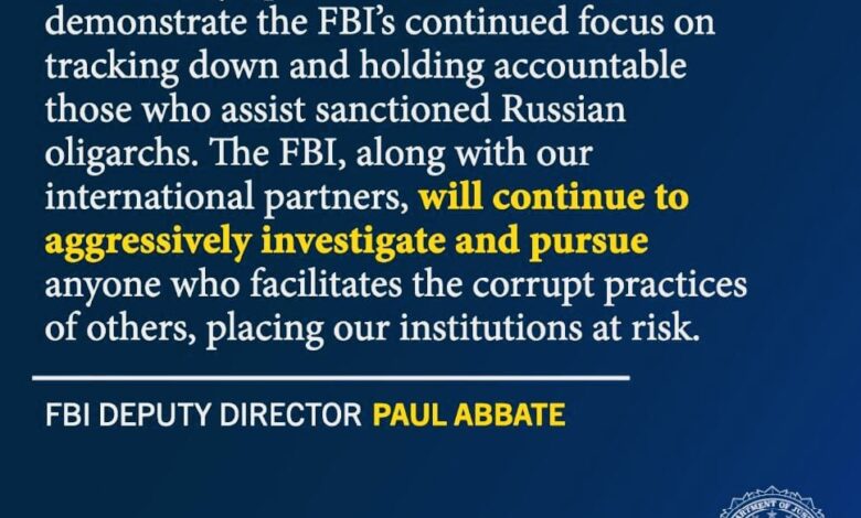 “Today’s indictments and the arrest executed by Spanish law enforcement demonstrate the FBI’s continued focus on tracking down and holding accountable those who assist sanctioned Russian oligarchs,” said FBI Deputy Director Paul Abbate. “The FBI, along with our international partners, will continue to aggressively investigate and pursue anyone who facilitates the corrupt practices of others, placing our institutions at risk.”