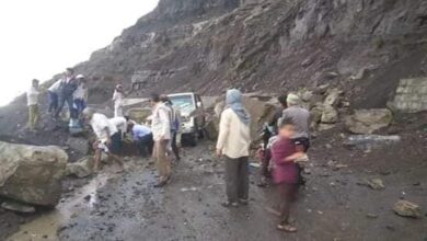 تعز …أمطار غزيرة تتسبب بانهيارات ارضية وقطع للطرق وجرف عدد من السيارات