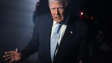 الرئيس الأميركي دونالد ترمب يتحدث إلى وسائل الإعلام في مطار بالم بيتش بولاية فلوريدا. 16 نوفمبر 2025 – REUTERS …