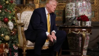 الرئيس الأميركي دونالد ترمب يشارك في مكالمة هاتفية في ليلة عيد الميلاد من نادي مارالاجو في بالم بيتش بفلوريدا في…