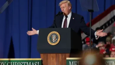 الرئيس الأميركي دونالد ترمب يلقي خطاباً في مركز روكي ماونت للمناسبات في ولاية كارولاينا الشمالية. 19 ديسمبر 2025. – reuters…