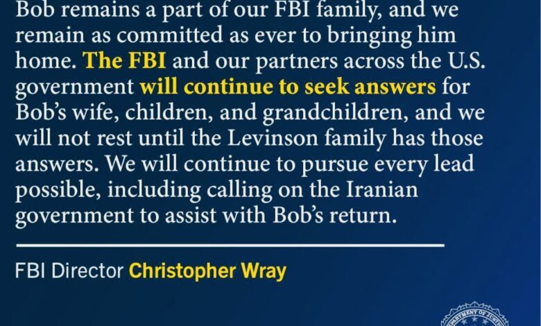 “Sixteen years have passed since Bob was abducted in Iran. Despite this passage of time, Bob remains a part of our FBI family, and we remain as committed as ever to bringing him home,” said FBI Director Christopher Wray. “The FBI and our partners across the U.S. government will continue to seek answers for Bob’s wife, children, and grandchildren, and we will not rest until the Levinson family has those answers. We will continue to pursue every lead possible, including calling on the Iranian government to assist with Bob’s return.”
