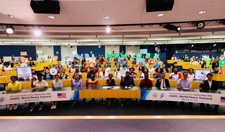 - On August 13th, over 150 people gathered at the CUNY School of Law for thepre-commemoration event for the 9th Anniversary of the September 18thHWPL World Peace Summit. Heavenly Culture, World Peace, Restoration ofLight (HWPL) is an international peace NGO afliated with the United NationsEconomic and Social Council and the Department of Global Communications.The organization is working actively around the world to promote peace andcessation of war.For the rst time since the start of the Covid-19 pandemic, HWPL’s annualcommemoration ceremony will take place near its headquarters in South Korea.Delegates from the United Nations, religious leaders and other peaceambassadors are expected to attend the World Peace Summit, where varioussessions are scheduled to take place September 18th – 20th under the theme ofthe Implementation of Multidimensional Strategies for Institutional Peace.
