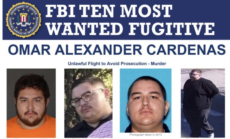 Omar Alexander Cardenas, wanted for his alleged involvement in the murder of a man and unlawful flight to avoid prosecution, has been added to the Ten Most Wanted Fugitives list. The FBI is offering a reward of up to $100,000 for information leading directly to his arrest.