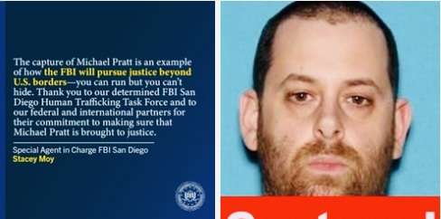 “The capture of Michael Pratt is an example of how the FBI will pursue justice beyond U.S. borders—you can run but you can’t hide,” said Special Agent in Charge (SAC) Stacey Moy of the FBI San Diego Field Office. “Thank you to our determined FBI San Diego Human Trafficking Task Force and to our federal and international partners for their commitment to making sure that Michael Pratt is brought to justice.”